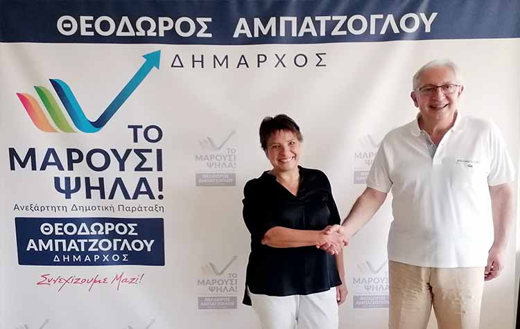 Την αρχιτέκτονα μηχανικό Αναστασία (Σίσσυ) Χουτοπούλου – Θεοδωράκη υποδέχθηκε ο δήμαρχος Αμαρουσίου Θεόδωρος Αμπατζόγλου στην ομάδα και το ψηφοδέλτιο του συνδυασμού ΤΟ ΜΑΡΟΥΣΙ ΨΗΛΑ!.